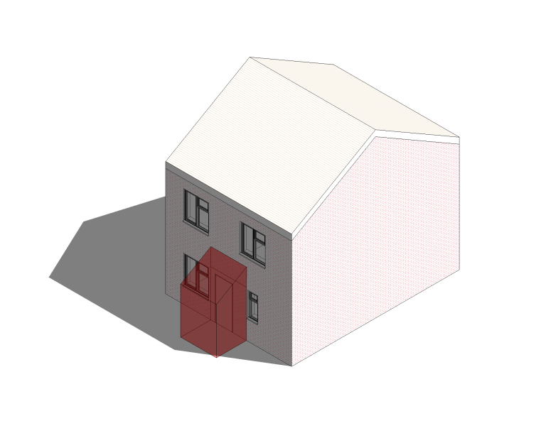 3D illustration of a house with one section highlighted in red.